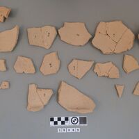 - Numerous fragments of piriform jar decorated with dark-on-light motives.