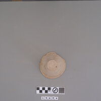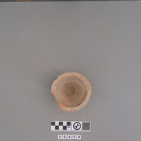 - Almost compete handleless cup with ledge rim.