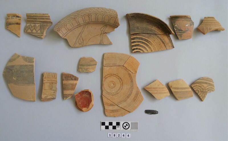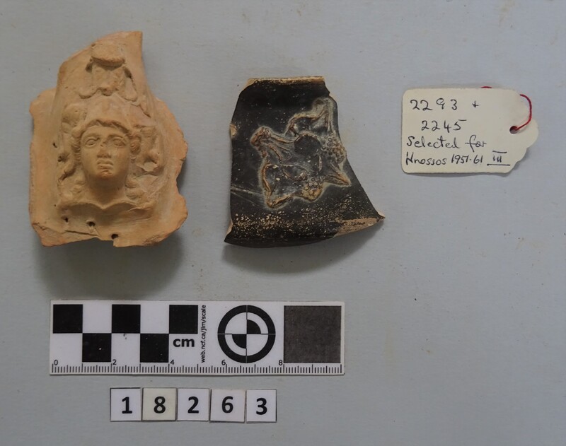 Label enclosed with two fragments in same bag: 2293 + 2245 selected for Knossos 1957.61 III / Found with RR: N+S 1) Plain