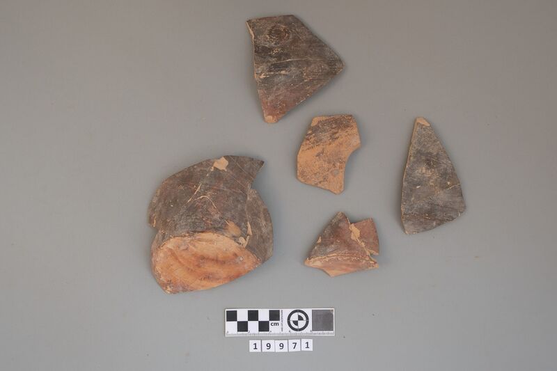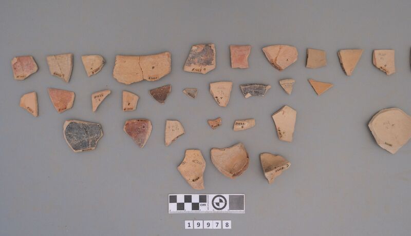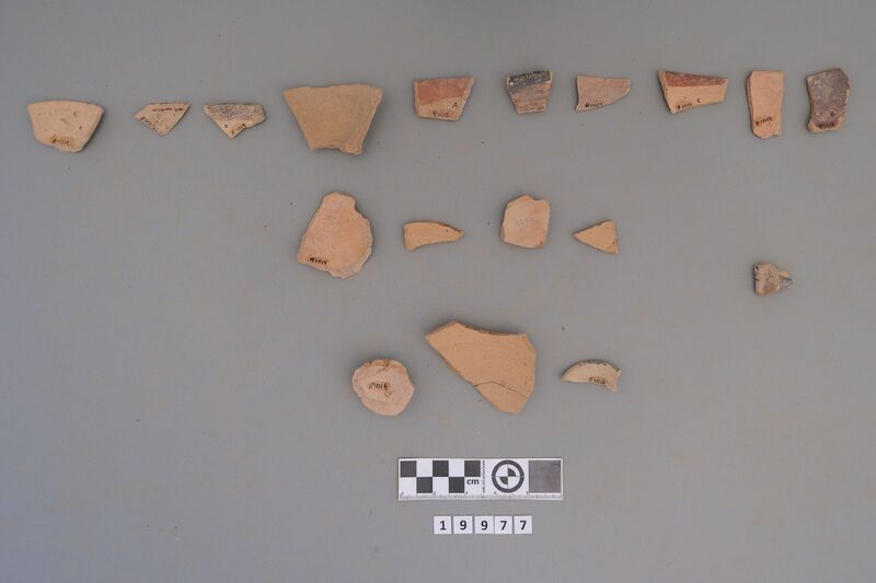 Six sherds: EIA 8th-7th century BCE including amphora and lid (identified by Kotsonas).