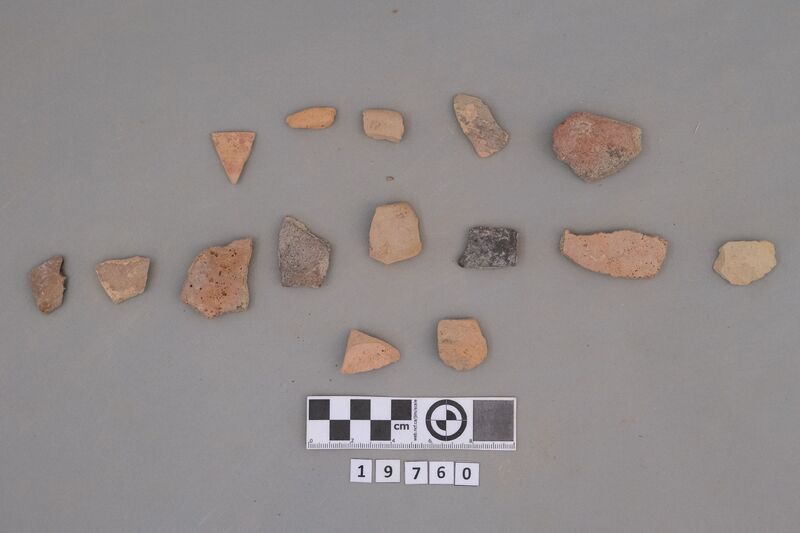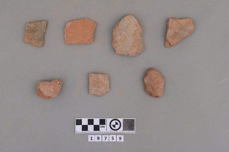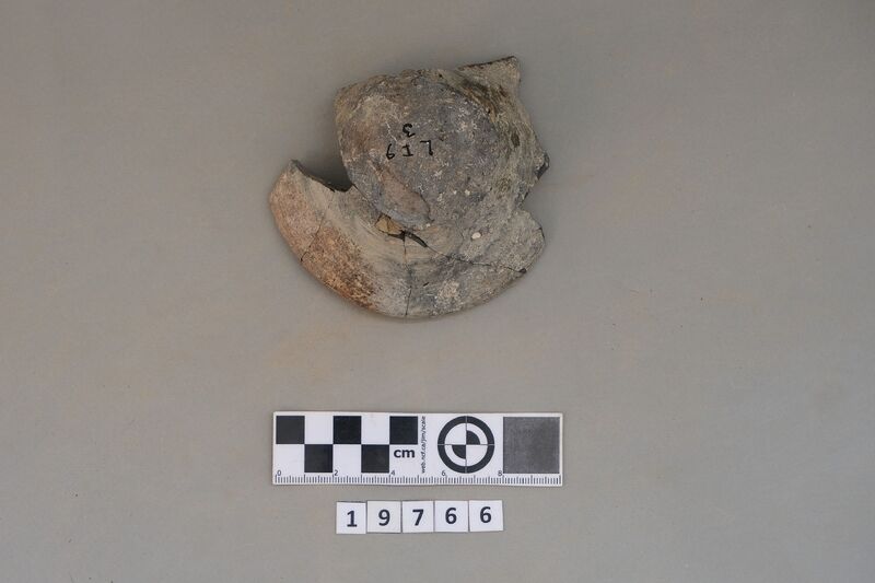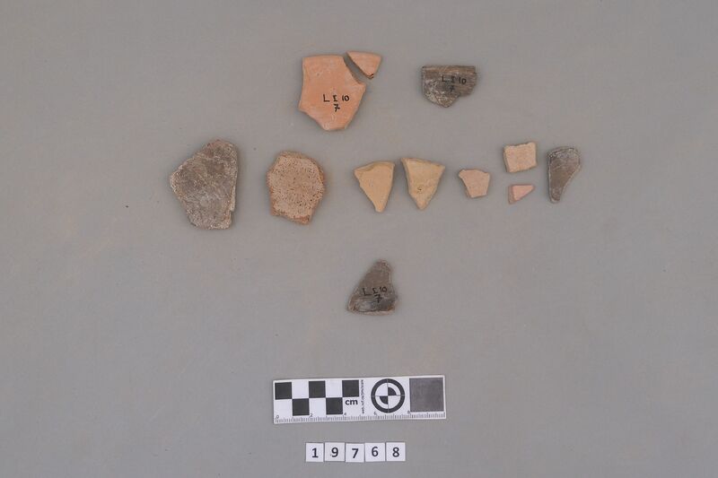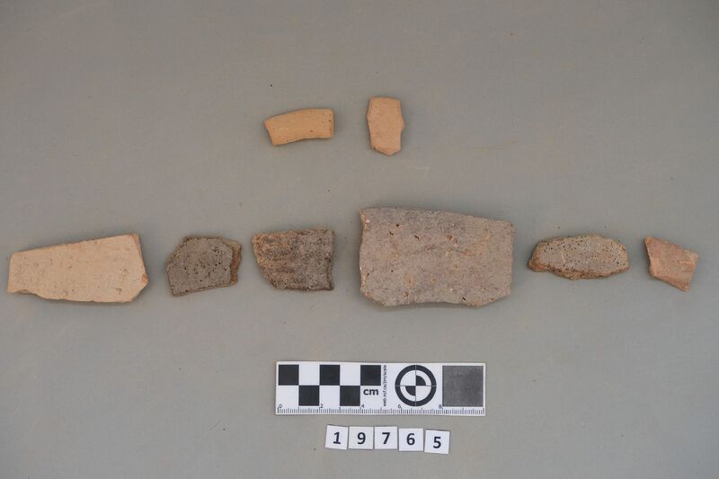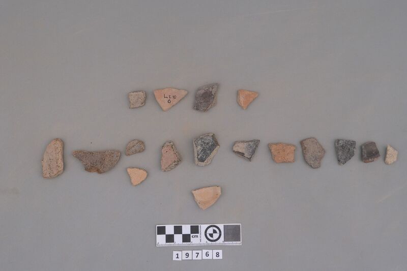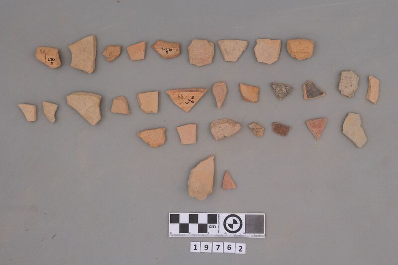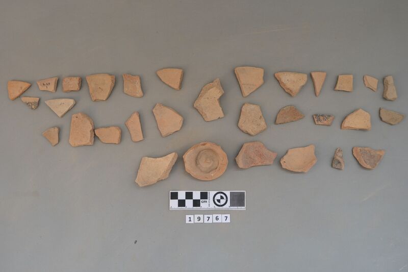 Sherds of conical cups (one of them with soot deposits on the rim indicating use as lamp)