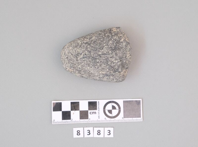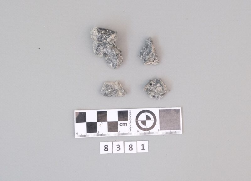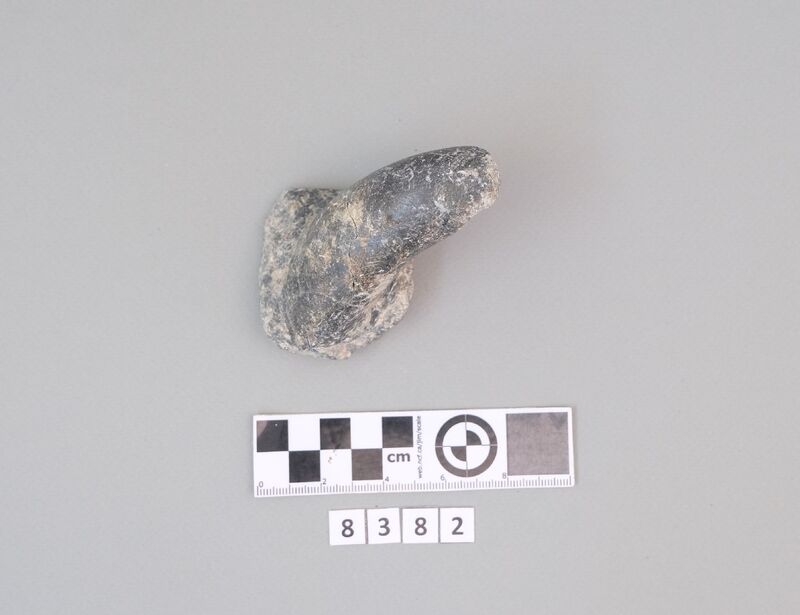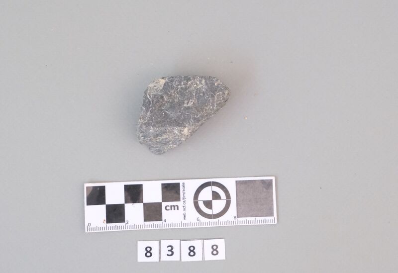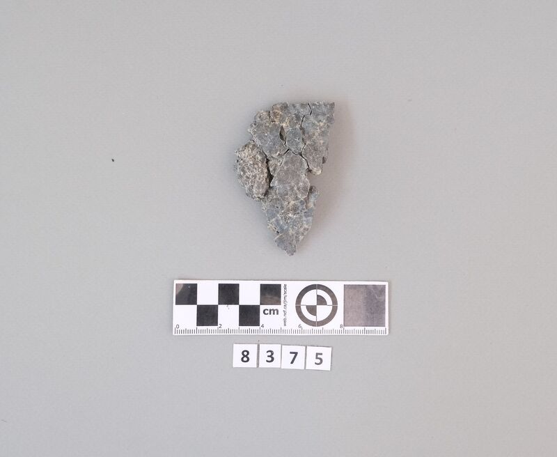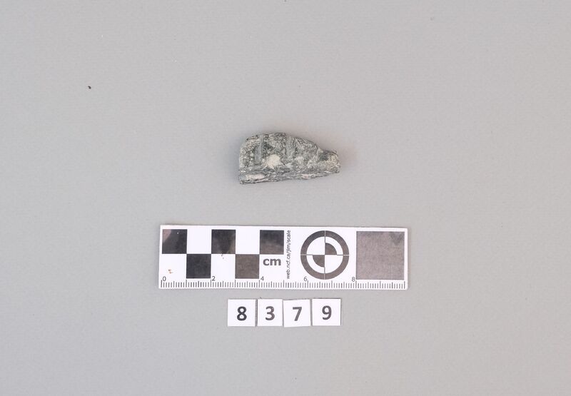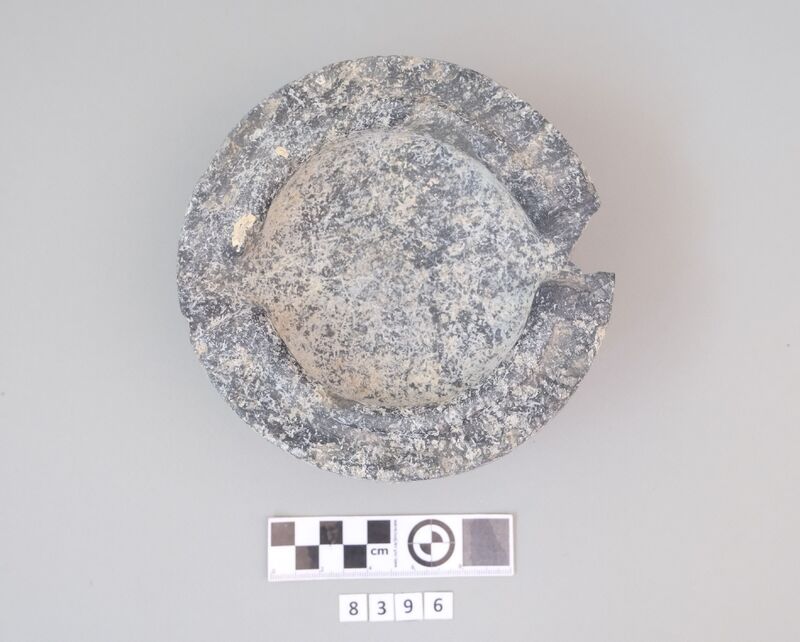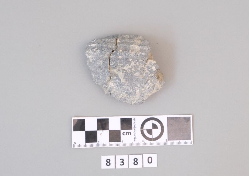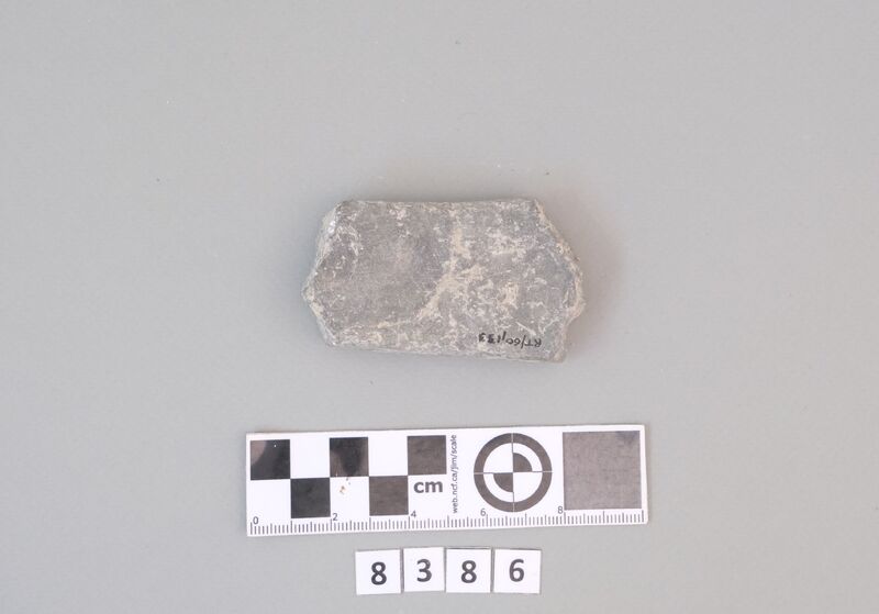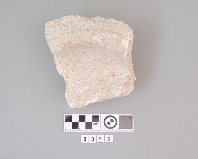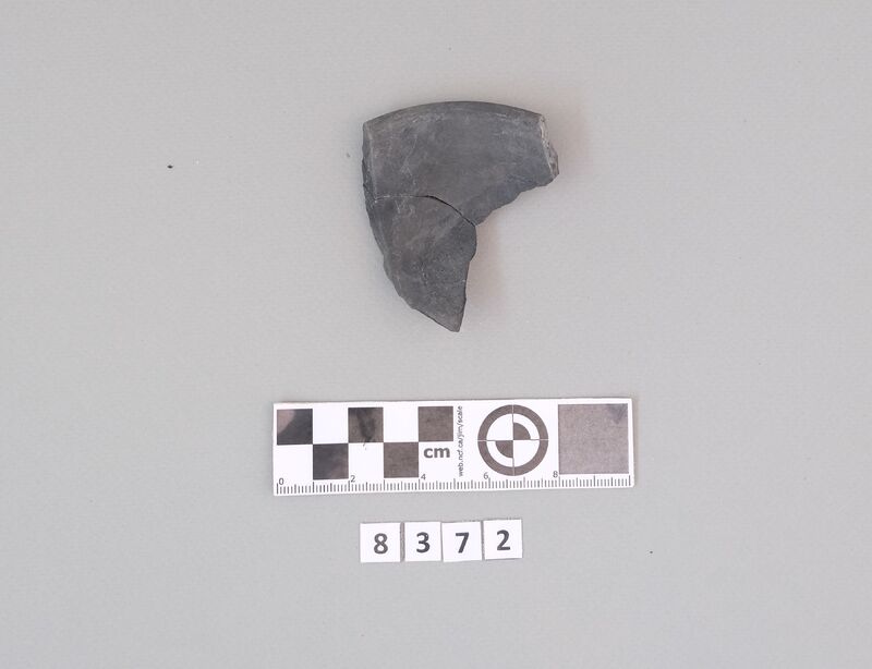 Fragment of rim and wall of stone vase. Parallel grooves on the rim.