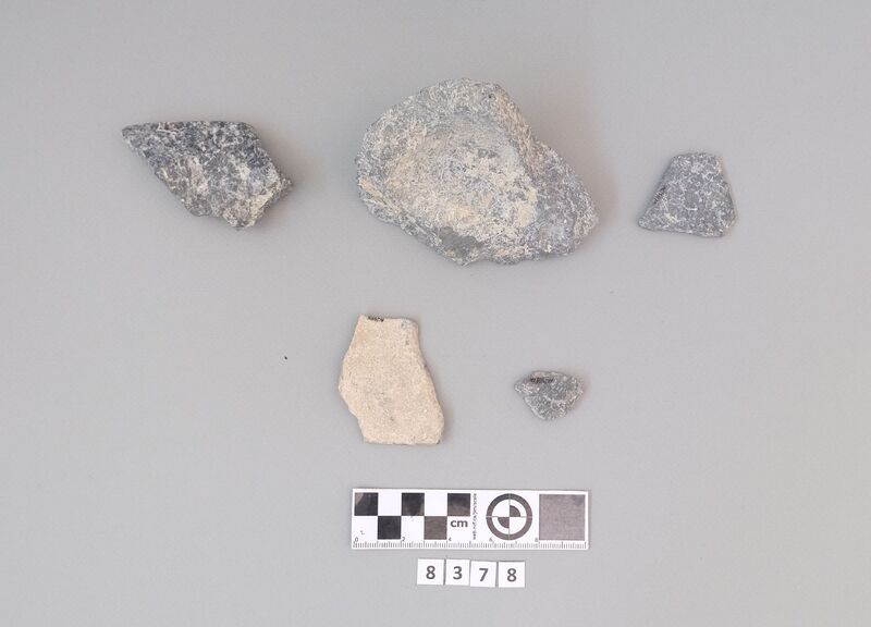 Fragments of stone vases. One base of large vase and one flaring rim of bowl.