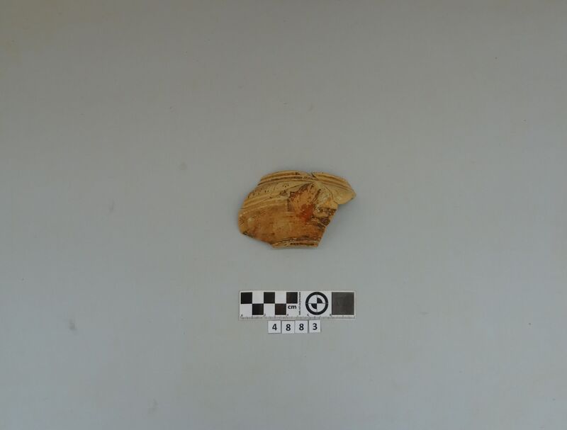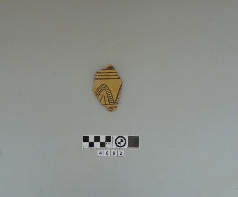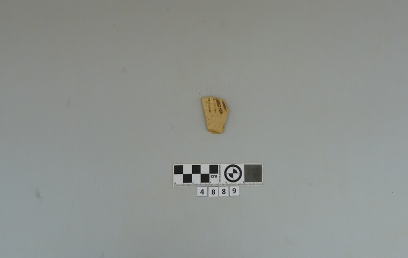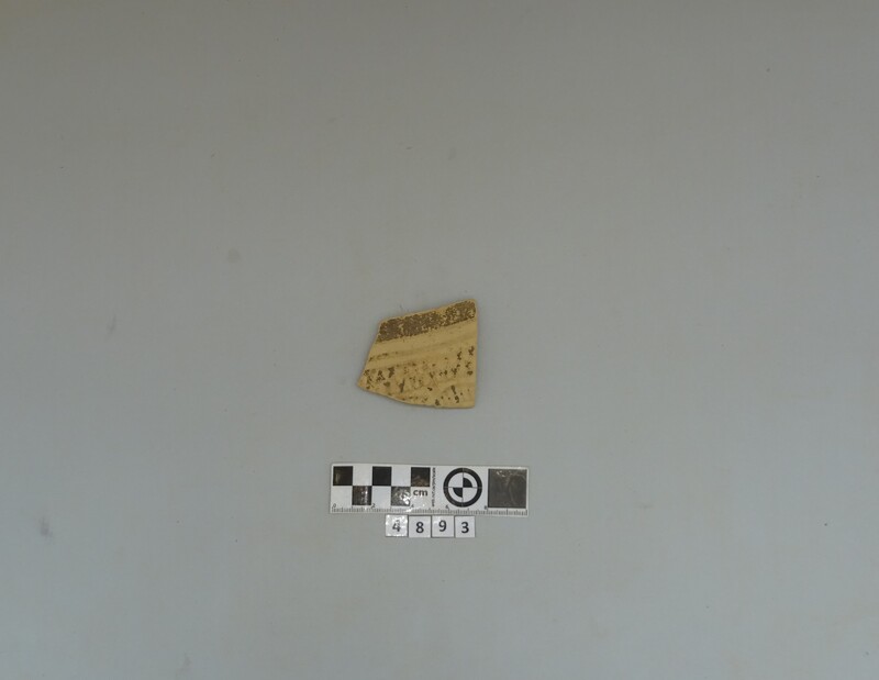 One fragment from shoulder of a closed vase. Soft buff clay