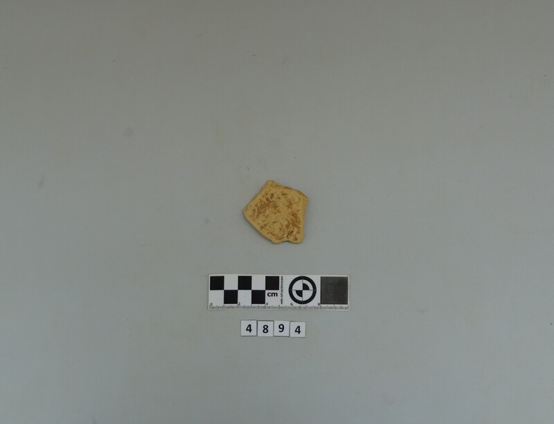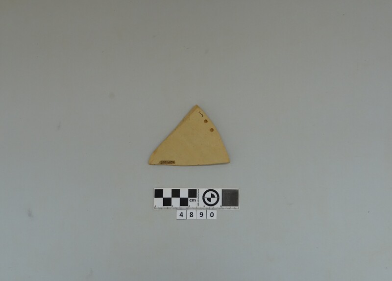One closed vase wall fragment. Soft buff clay