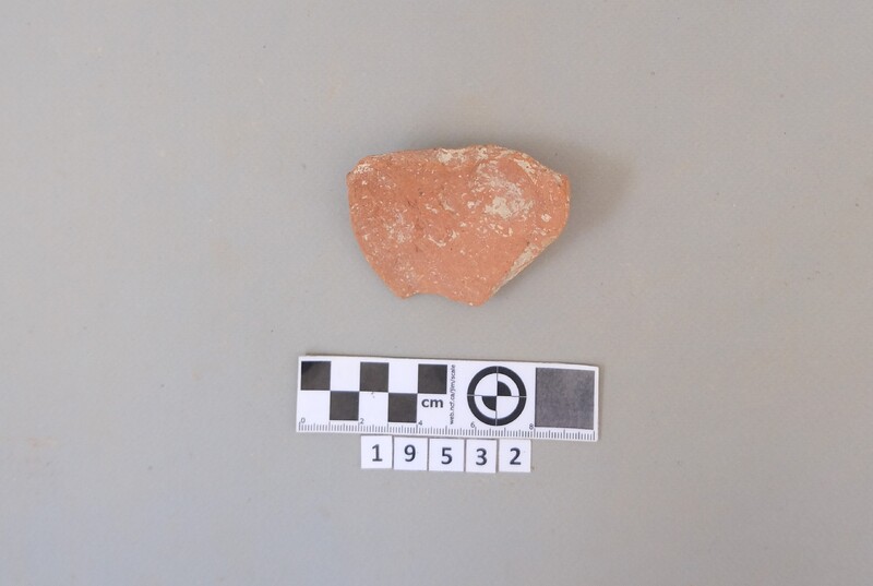 Lower part of a squat jug in red gritty fabric