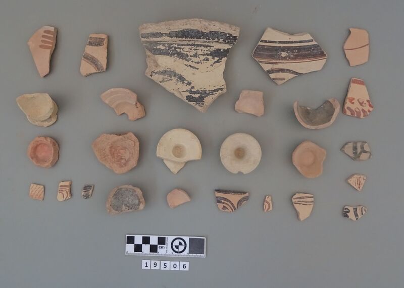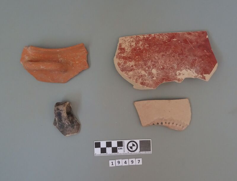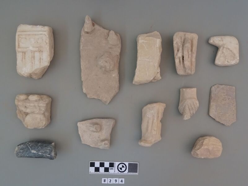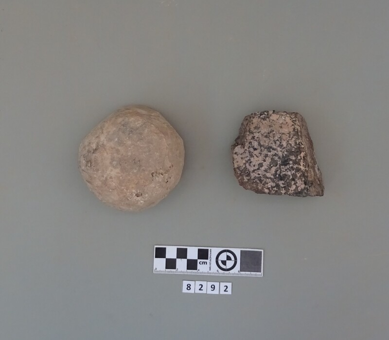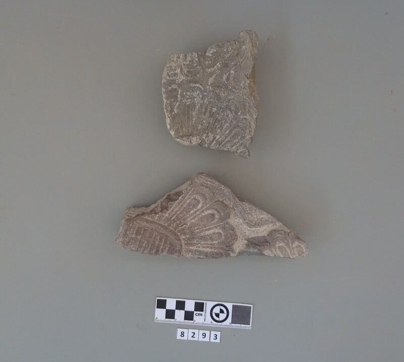 Fragment of stone tool or architetural object and hematite corner of an object.
