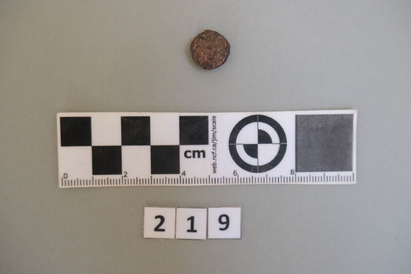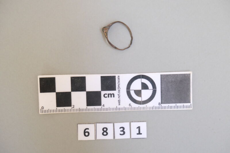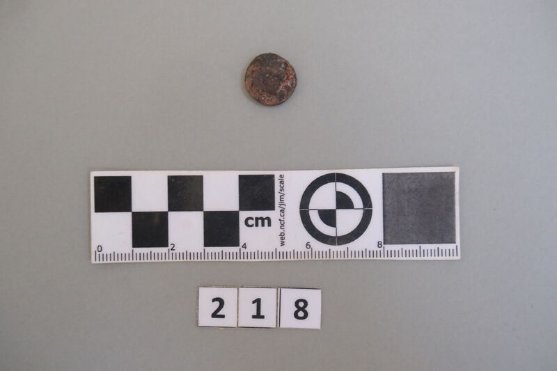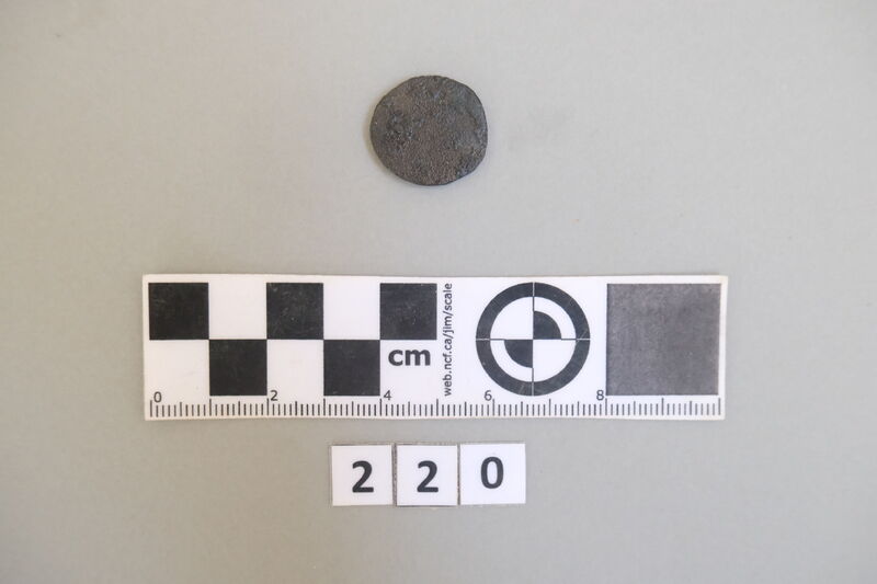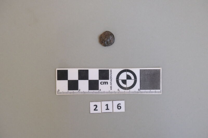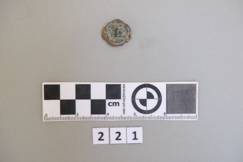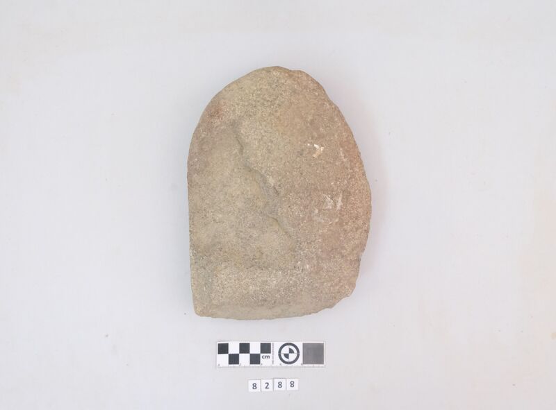 Recomposed coheel-ridged jug with flattened handle from shoulder to neck. Some neck and all rim are missing. Also gaps in wall.