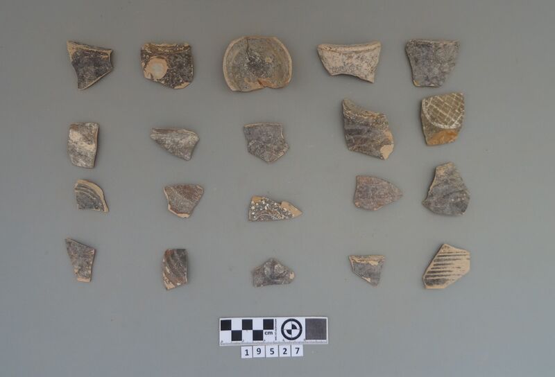 Sherds of various types including cups (bell-shaped cup)