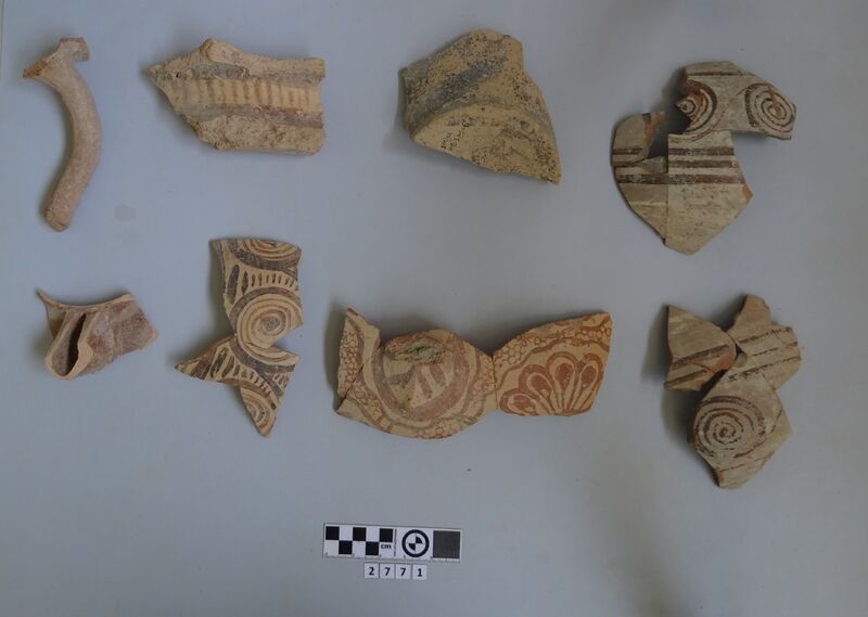 Sherds of various types including cups (vapheio