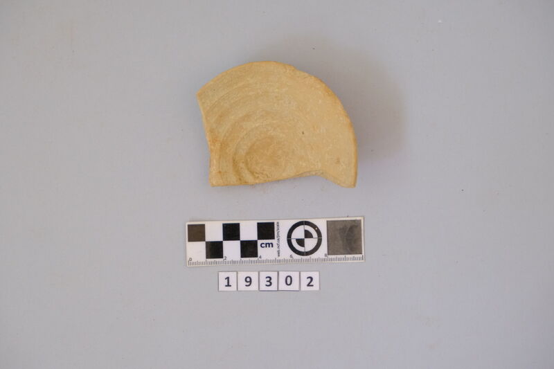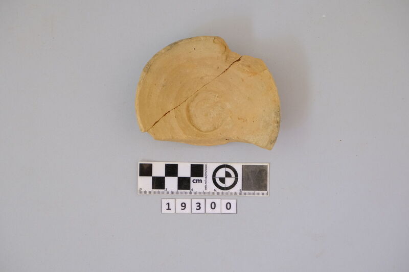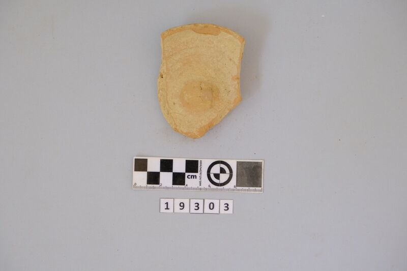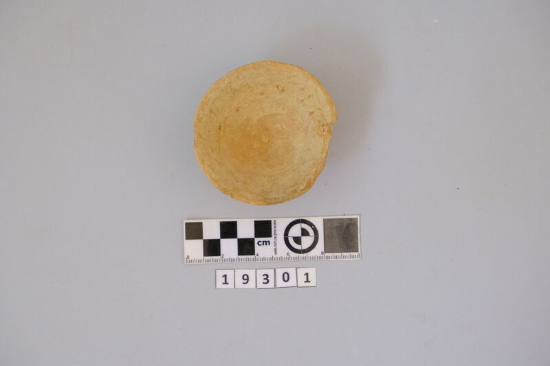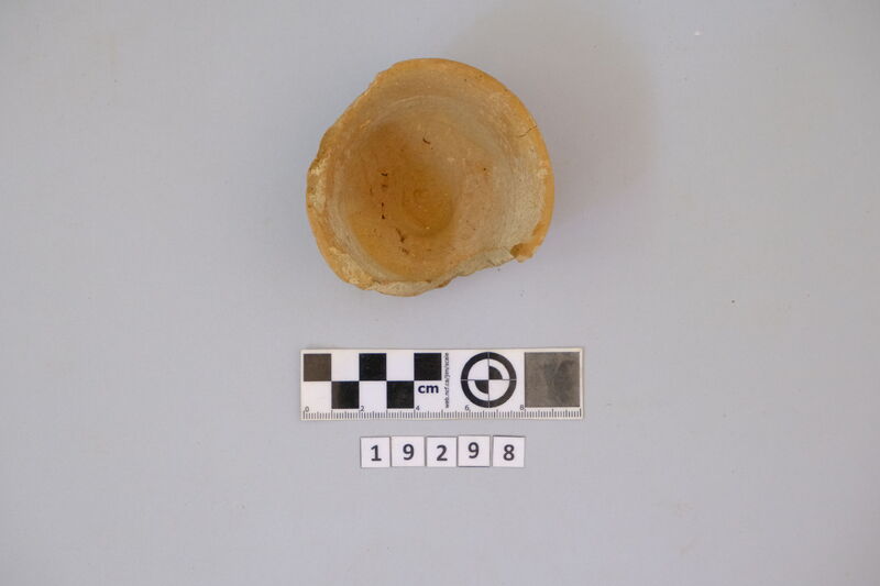 One complete conical cup with soot deposits on the rim showing use as lamp.