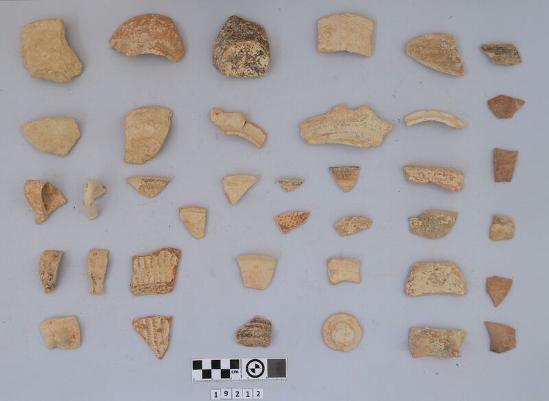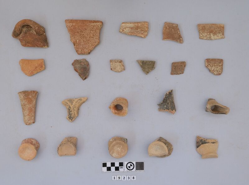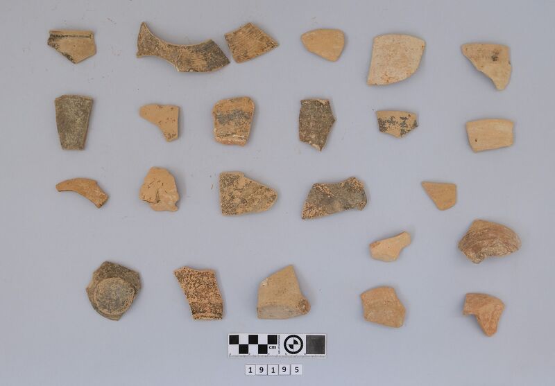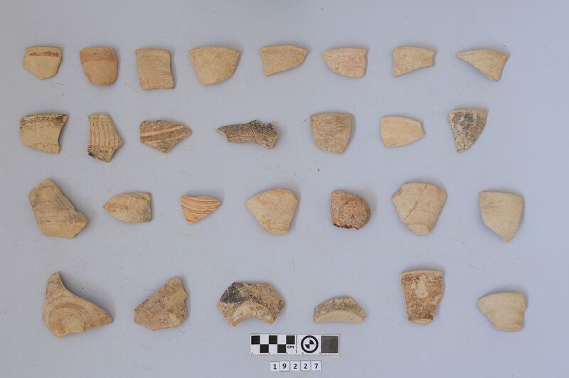 Sherds of various vessels mainly dated to MM IIIA with one LM II. Include cups (conical