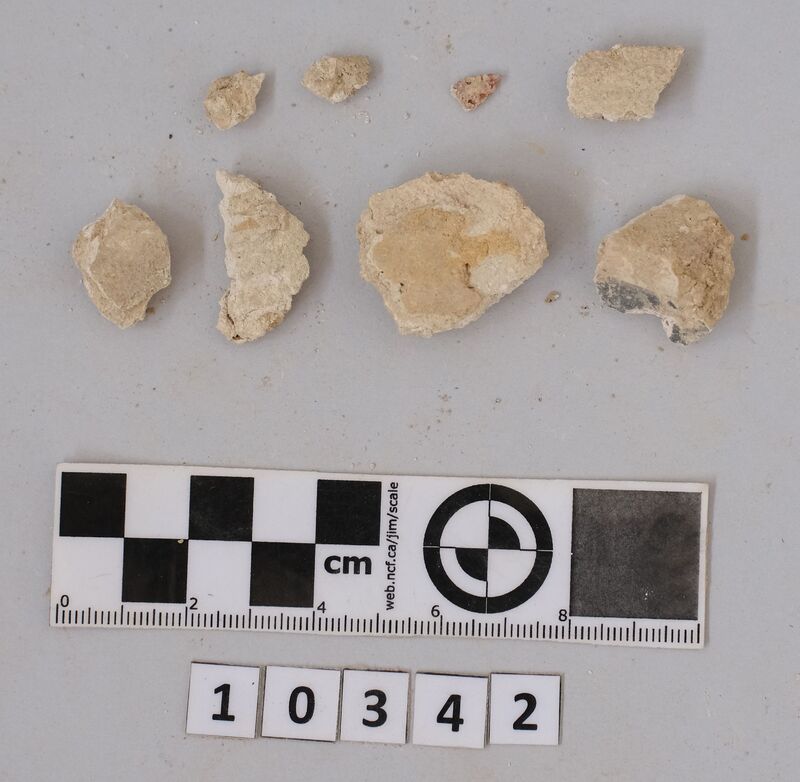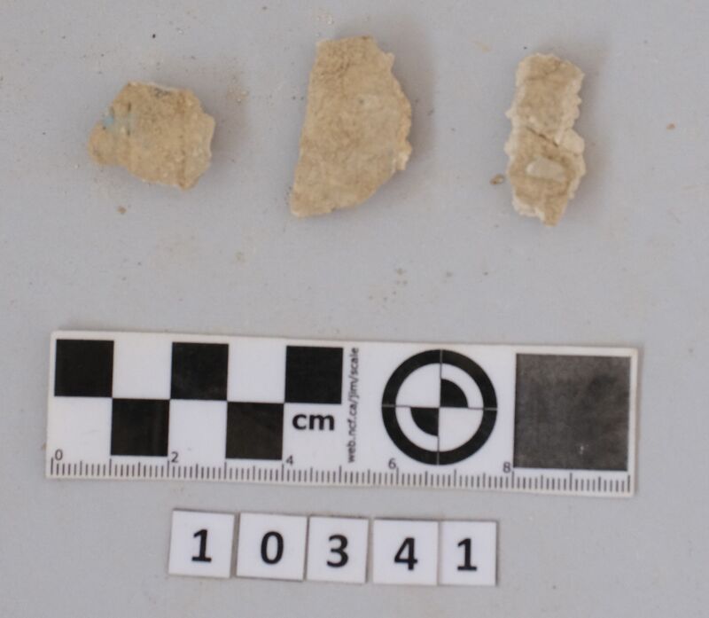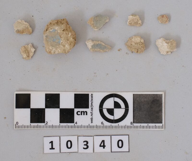 Fragments of wall plaster with traces of blue paint.