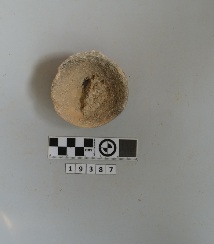 One squat carinated cup with greyish surface.
