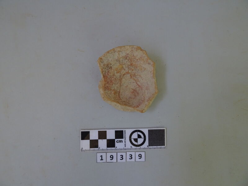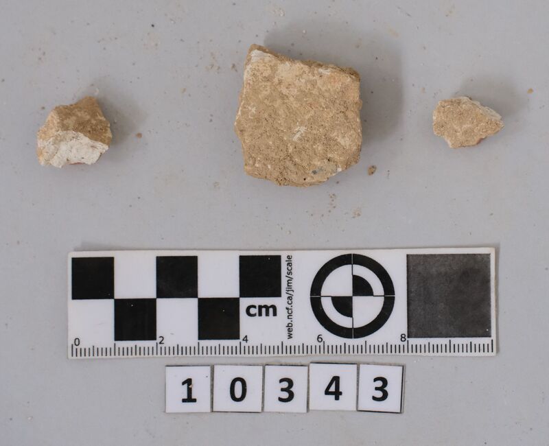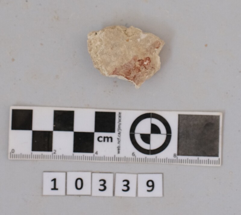 Fragments of wall plaster with traces of light red paint.