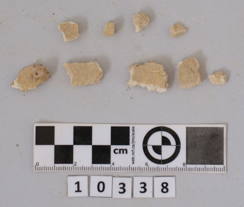 Fragments of wall plaster with traces of black