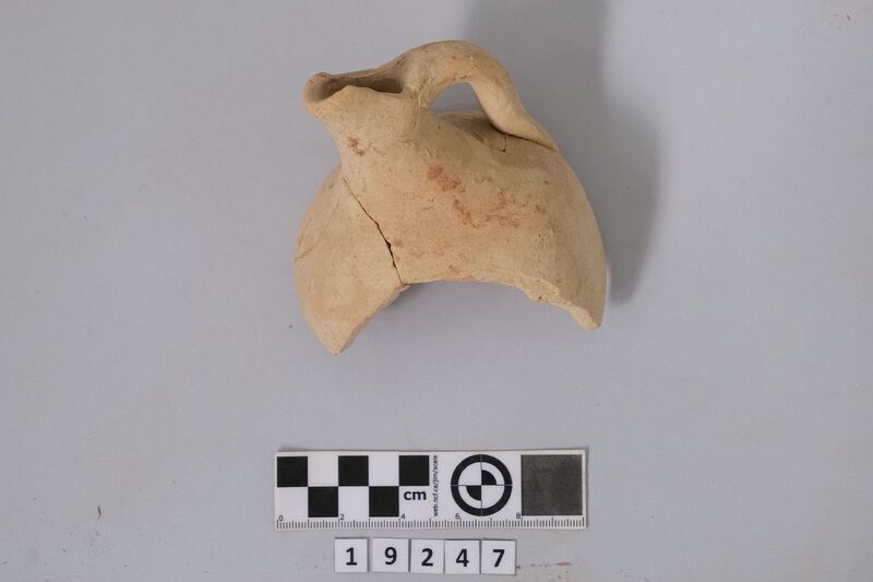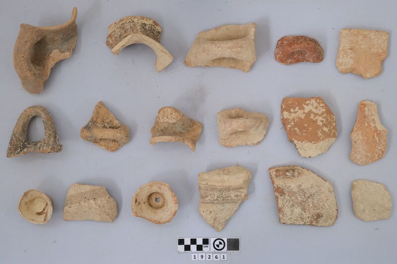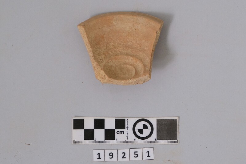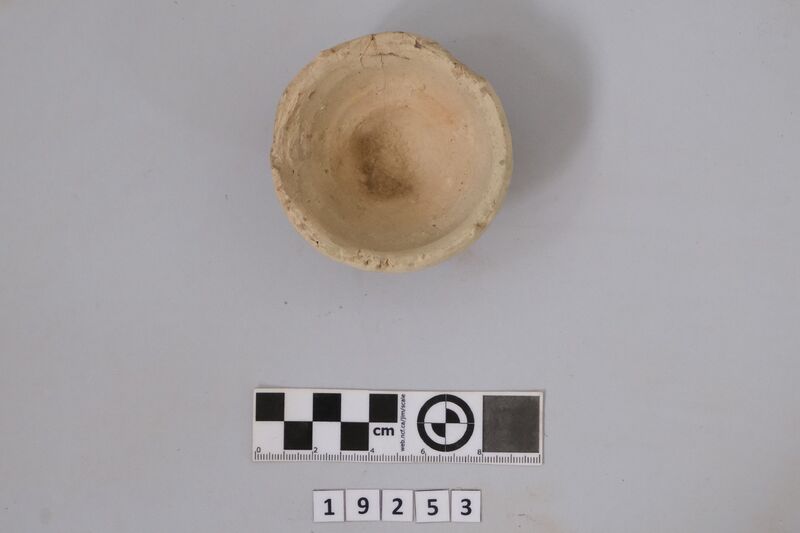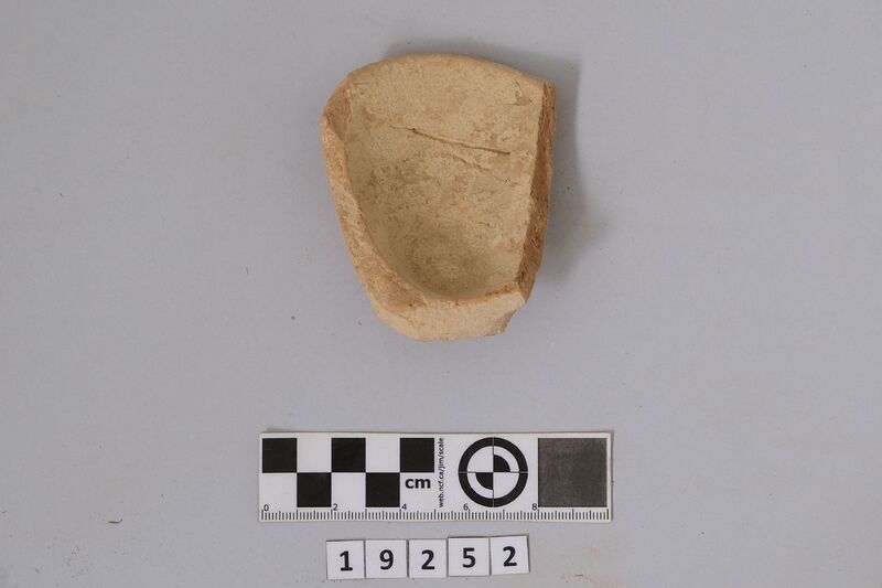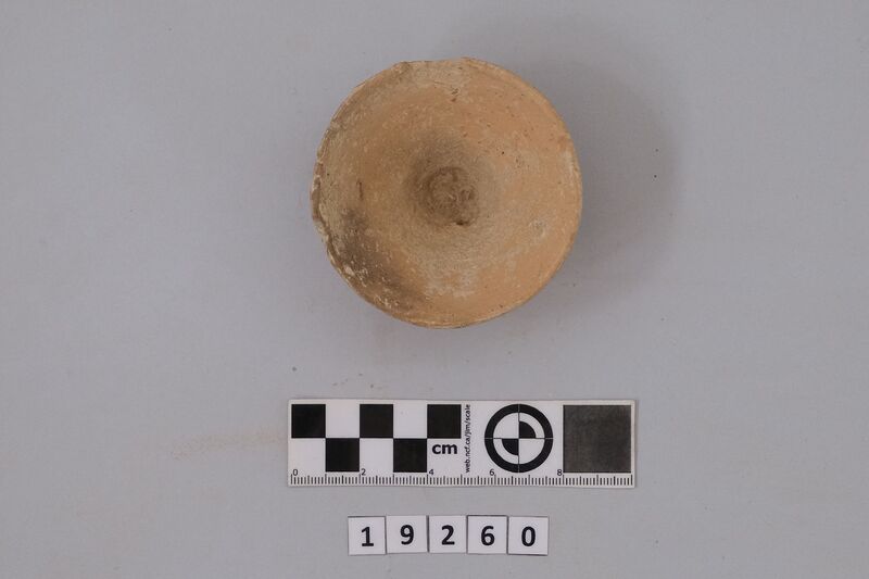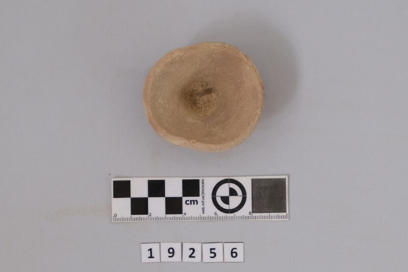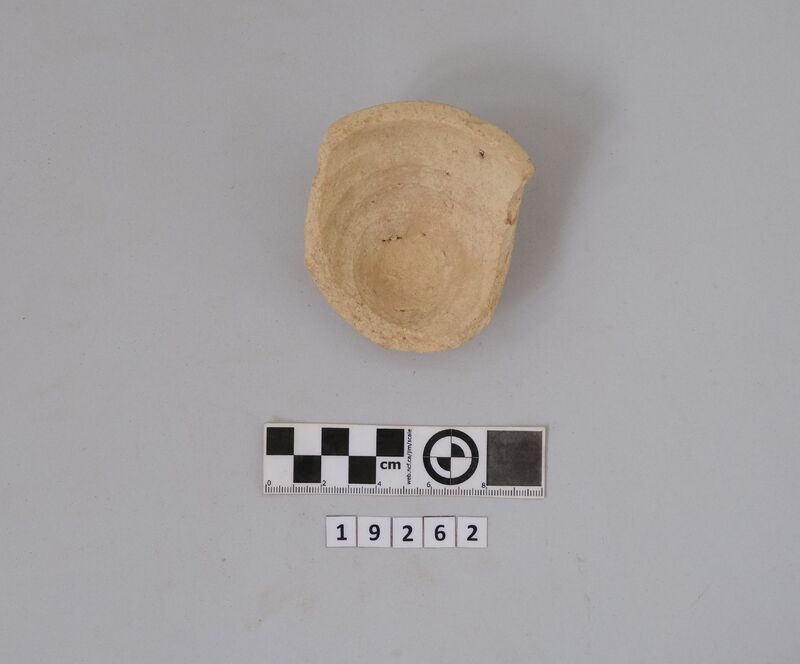 One complete conical cup with soot deposit on its rim testifying of its use as lamp.