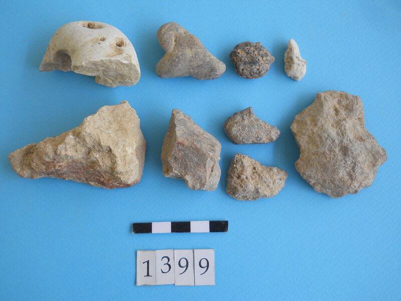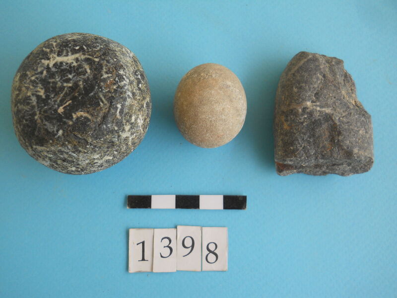 Two rounded and one flint (?).