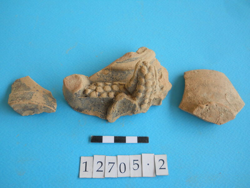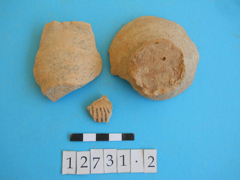 Rim and base fragments. Decorated.