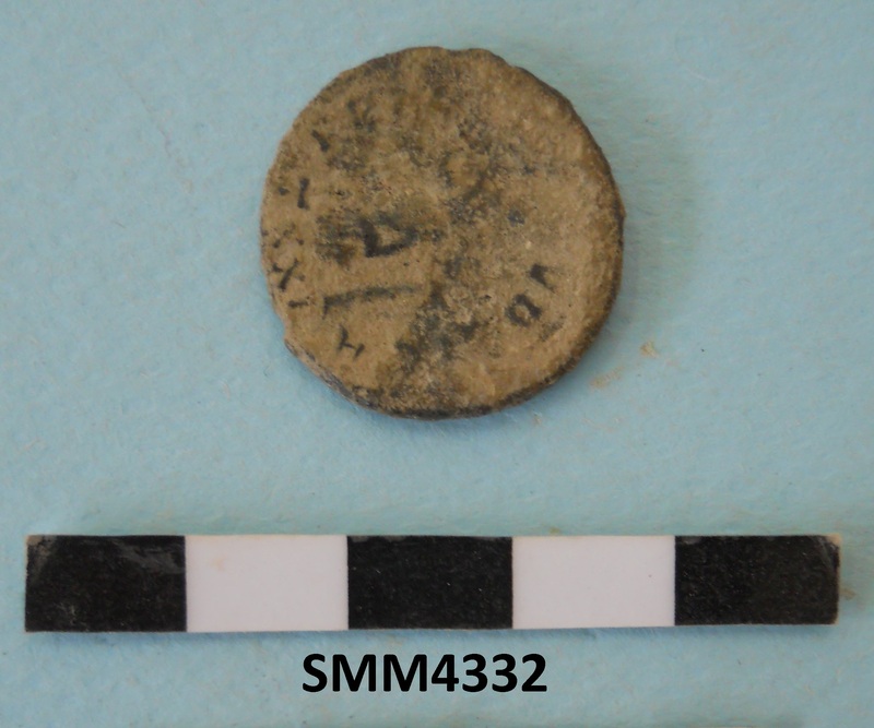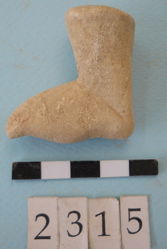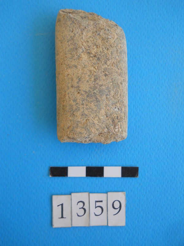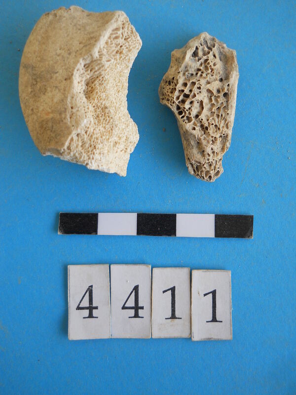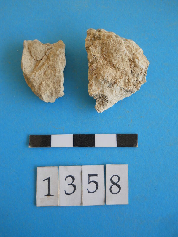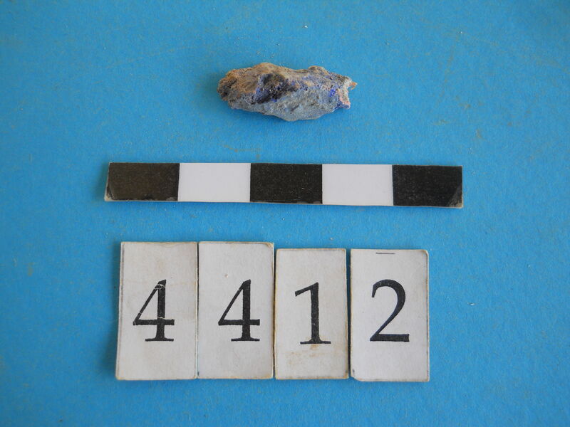Unidentified fragment with blue pigment.