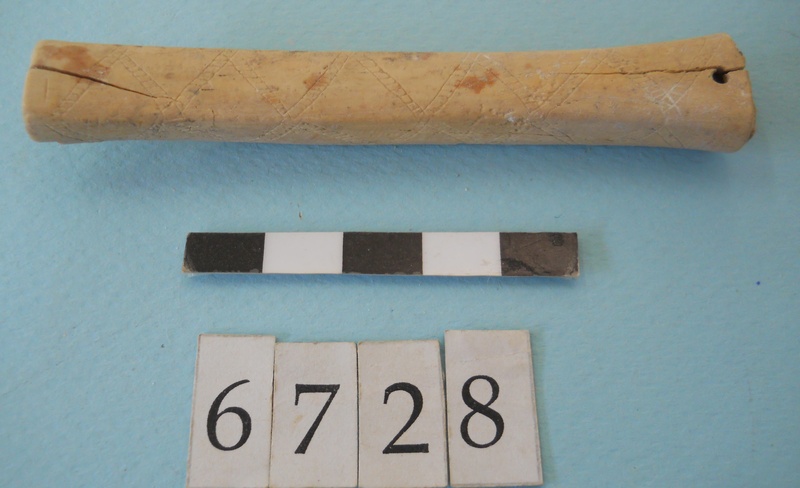 With carved decoration. Possibly the handle from a knife.