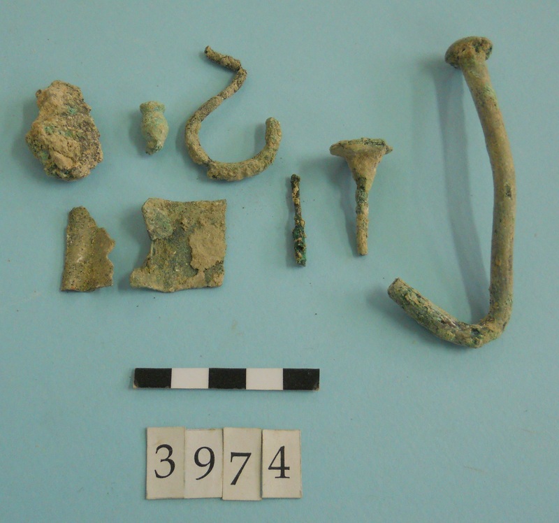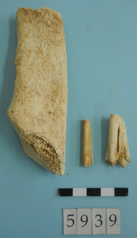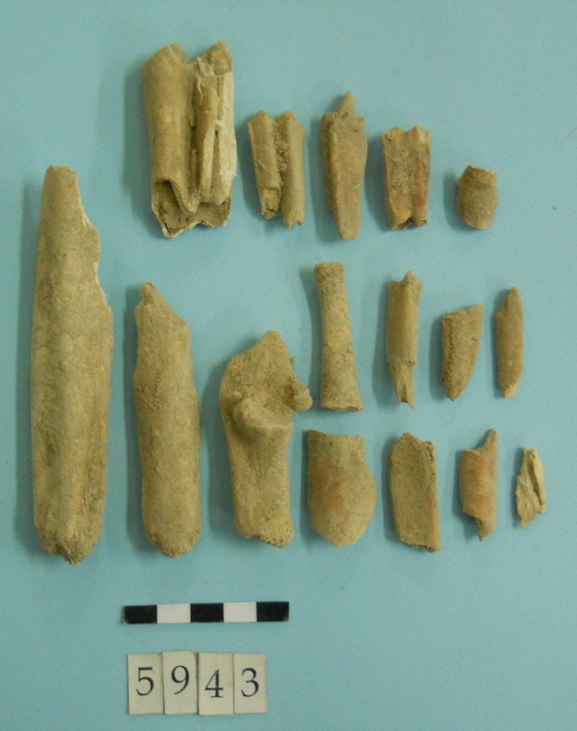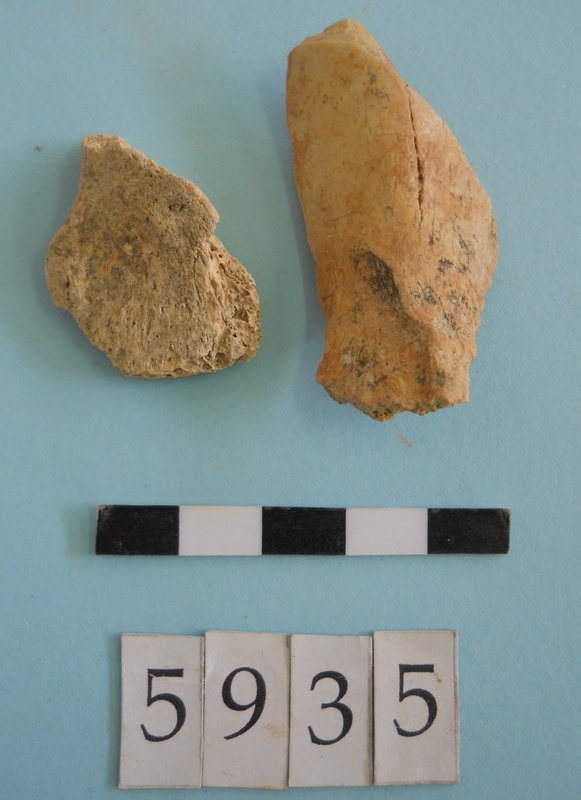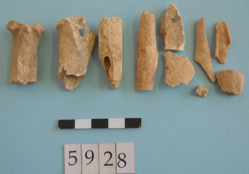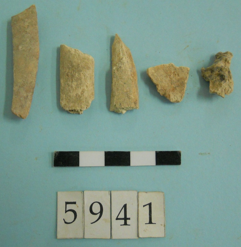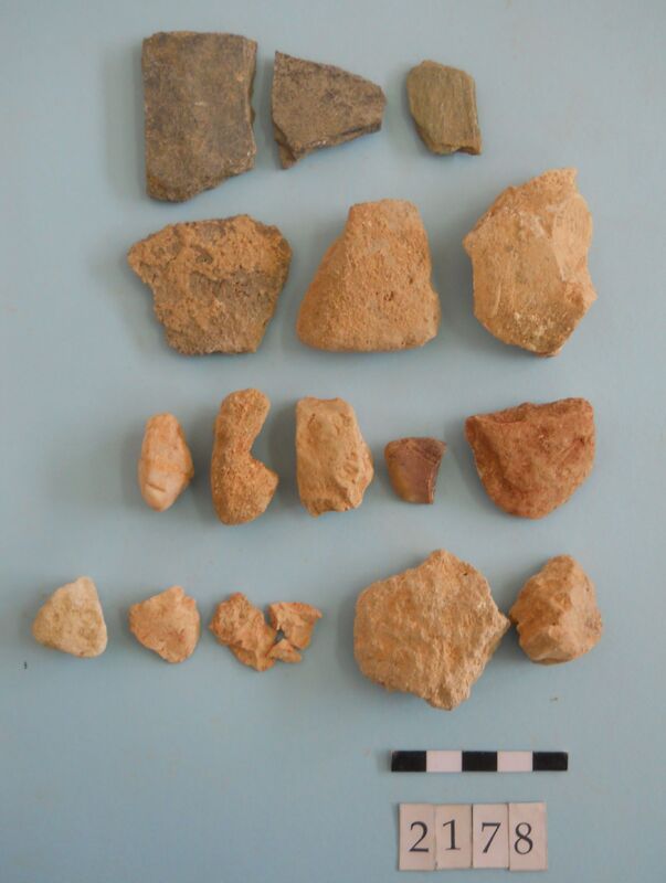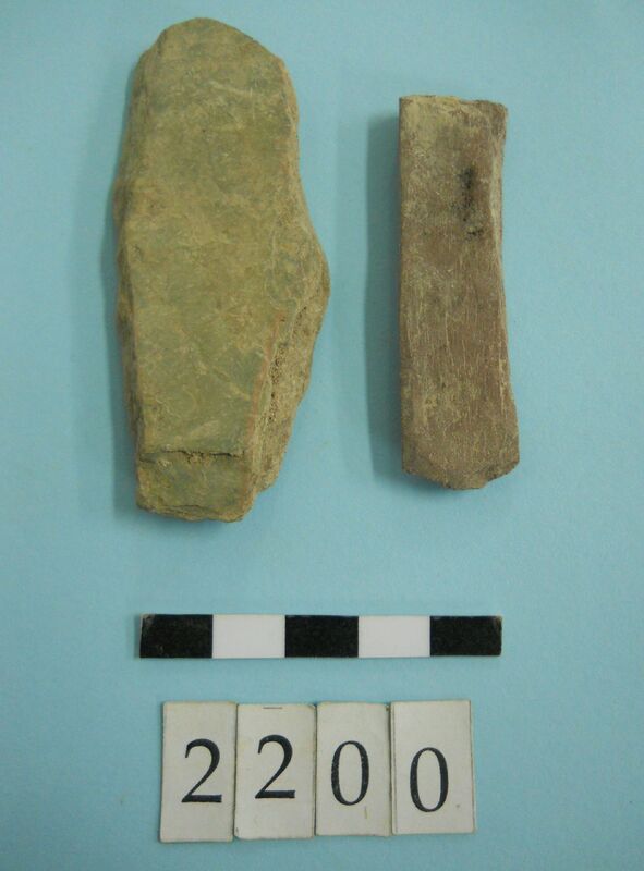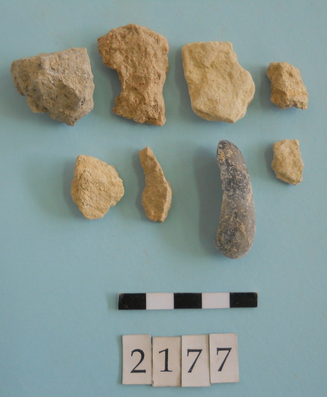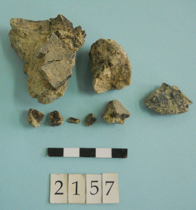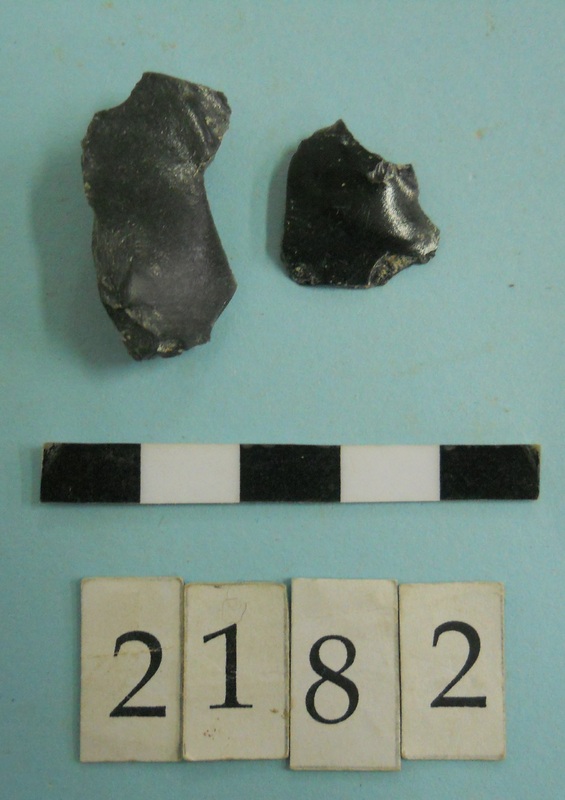 Stone slag fragments and one flint imitating obsidian piece.