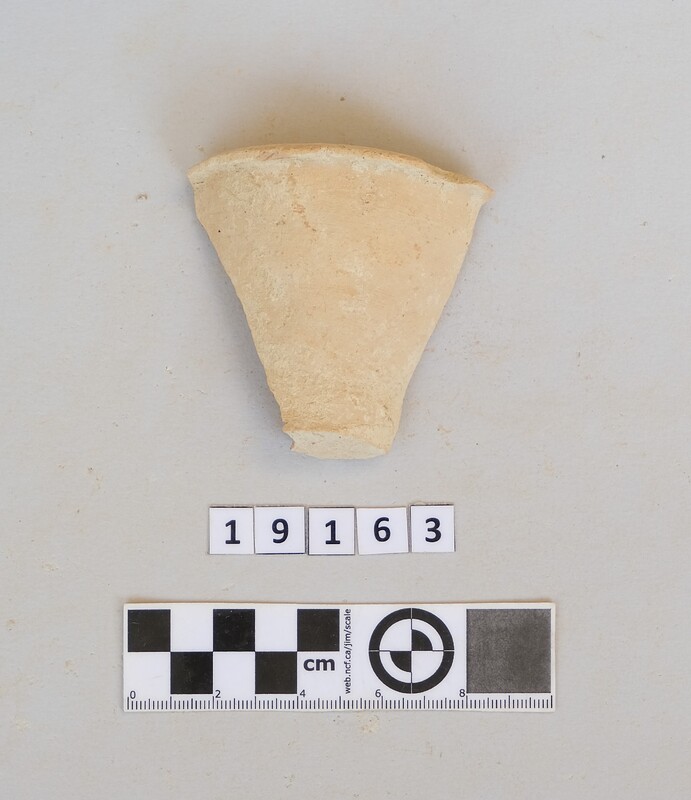 Half-preserved flaring conical cup with soot deposit on the rim.