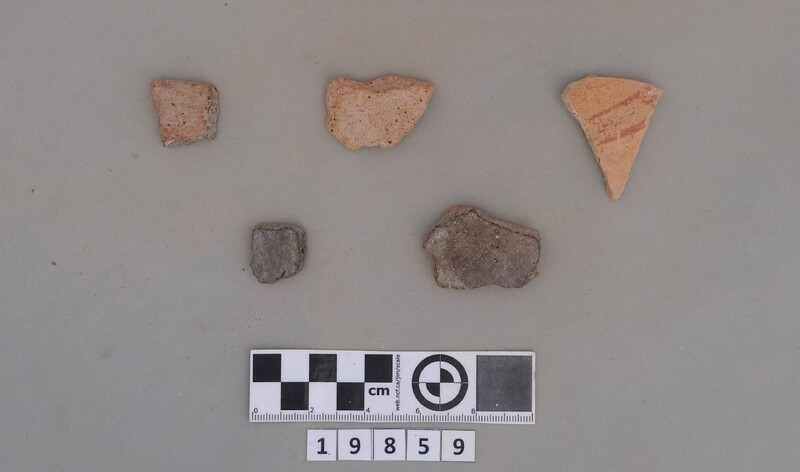 Four sherds of Neolithic open vessels and one sherd of Minoan straight-sided cup.