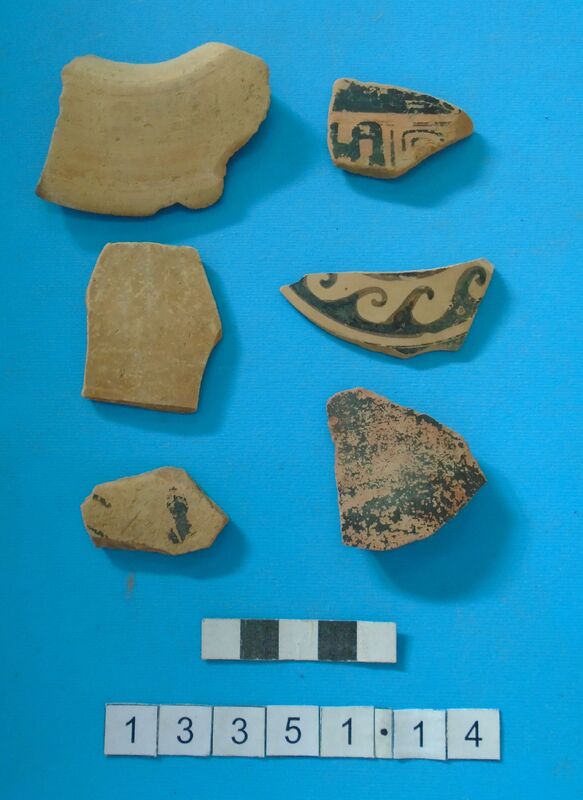 Plain and painted medium ware. Featuring black slip decoration; careless wave pattern